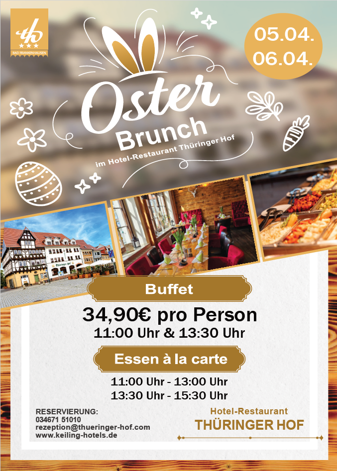 Herzlich Willkommen im Hotel-Restaurant "Thüringer Hof". Der Thüringer Hof im idyllischen Stadtzentrum Bad Frankenhausens bietet nicht nur für Familien, Wandersleute oder Touristen das ideale Ambiente. Auf unserer Website finden Sie einen Überblick über unser Haus, unsere Angebote und Serviceleistungen. Außerdem können Sie hier direkt eine Zimmerbuchung in unserem Hotel vornehmen und sich einen ersten Eindruck über Hotel und Restaurant verschaffen. Besuchen Sie uns doch einmal und überzeugen Sie sich persönlich vom Charme des Thüringer Hofs und lassen Sie sich in unserem Restaurant täglich ab 11:30 Uhr von unseren freundlichen Servicekräften mit deutsch-mediterranen Köstlichkeiten aus unserer Küche verwöhnen. Unser Haus ist direkt am Anger von Bad Frankenhausen gelegen und somit leicht zu finden und zu erreichen. Die hoteleigenen Parkplätze bieten für unsere Hotelgäste besten Komfort. Unsere Hotelgäste finden gegenüber des Thüringer Hofs öffentliche kostenfreie Parkmöglichkeiten, welche auch für Busse bestens geeignet sind.